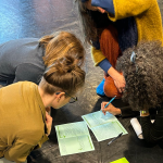 A la suite de ces formations, une ingénierie coopérative s’est mise en place à la rentrée 2020 afin de poursuivre la recherche autour de la problématique Faire cercle. Elle est constituée de professeur∙es, de formateur∙ices du 1er et du 2nd degrés, d’un artiste, d’une médiatrice, et de chercheur∙ses qui travaillent ensemble de façon itérative : le dispositif d’enseignement est conçu collectivement, mis en œuvre auprès de trois classes de cycle 3 (CM1, CM2 et 6ème), étudié à l’aide de captations vidéo, de prises de notes, d’observations, d’entretiens, puis réélaboré et remis en œuvre à nouveau auprès des élèves.